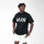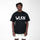 Made from pieces of adhesive tape, the tape forms the logo that can be seen on the front of the hoodie. The T-shirt is entirely black on the back.
