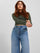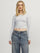 Fait de tricot côtelé, ce t-shirt présente une coupe courte pour une touche tendance et chic. À porter avec un jean taille haute pour un look tendance.