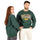Coton ouaté col rond de couleur vert uni avec logo imprimé placé devant